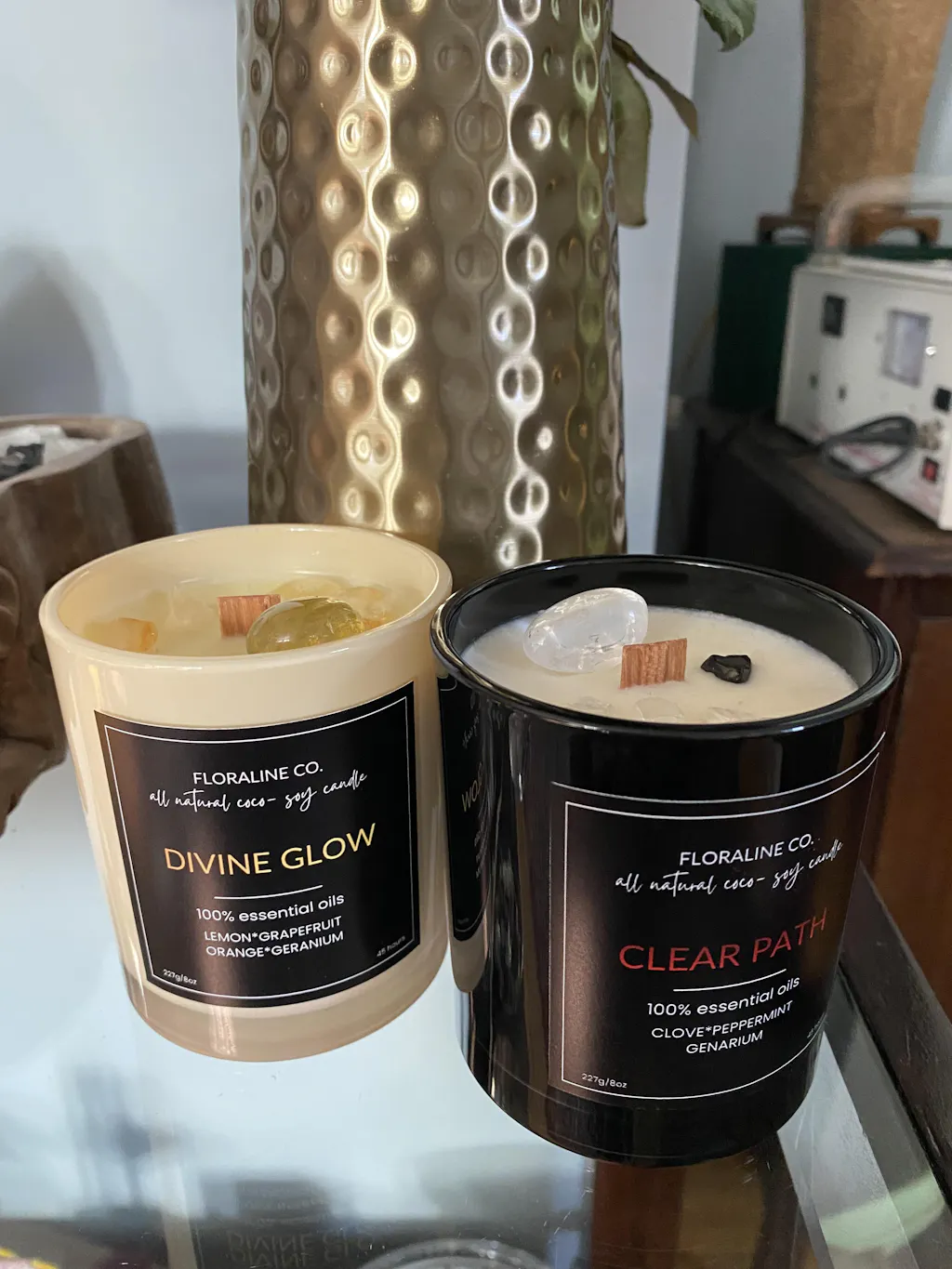 This thoughtfully curated candle bundle brings together two complementary energies: uplifted joy and grounded clarity. Designed to support both emotional brightness and mental focus, Divine Glow and Clear Path work in harmony to create balance, intention, and ease throughout your day. Together, they invite you to slow down, reset, and reconnect with what truly matters.