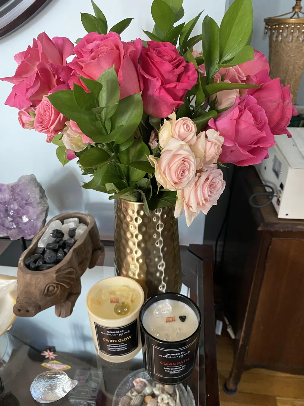 I absolutely love the 2 candles in the candle bundle. I first sampled Divine Glow, which has a joyful, uplifting scent, which boosted my mood. Next, Clear Path helped clear my head and focus on some projects. These candles are so lovely, and a welcome addition to my home environment!