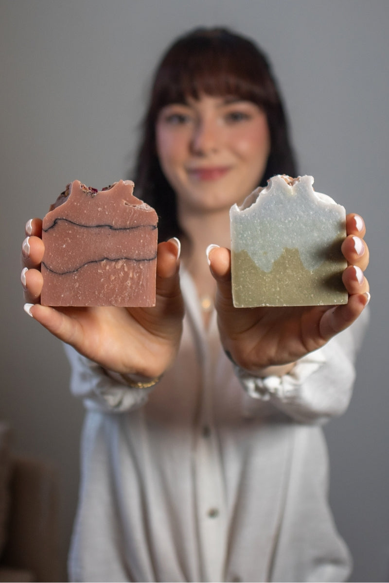 Soap making became an unexpected but joyful extension of that mindset. I began crafting soaps to share a little bit of the natural, chemical-free goodness I believe in. Each bar is made with 100% pure essential oils, chosen not just for their fragrance but for their calming, invigorating, or restorative properties. I also use clays and botanicals like lavender buds, calendula petals, and oatmeal to enhance the natural benefits and create beautiful, nourishing bars.